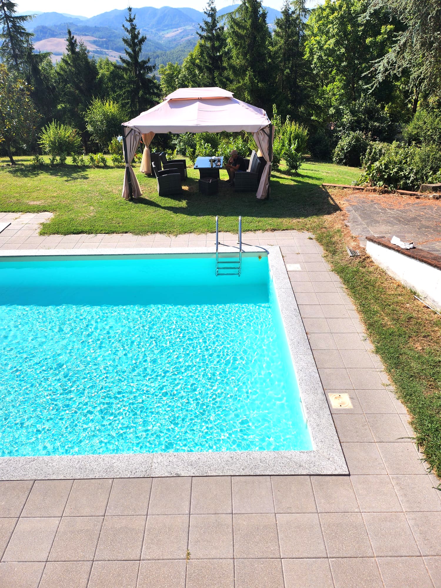 Fortunago (PV) VENDITA in uno dei borghi più belli d’Italia, in splendida posizione panoramica, inserita in tranquillo contesto residenziale, proponiamo in vendita casa completamente indipendente composta al piano terra da spaziosa taverna con uscita al portico verandato, studio, bagno, locale caldaia e riposiglio. Al primo piano ampio soggiorno con cucina a vista e con uscita al terrazzo panaromico, disimpegno, camera matrimoniale, camera da letto e bagno. Completano la proprietà piscina sul panorama e 10.000 mq circa di terreno recintato. L’immobile è dotato di zanzariere, pozzo, raccolta di acqua piovana, aria condizionata e fotovoltaico